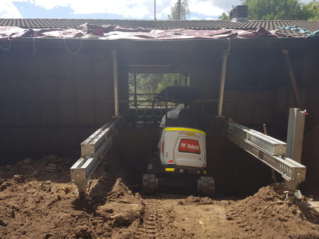 Our Mini Excavator, for instance, is a 2-tonne excavator capable of shrinking the footing to move into spaces as tight as 980 millimetres. As you can see in this job at Wyoming, Working in confined spaces, our staff were able to manoeuvre in difficult terrain to remove contaminated soil from the site.